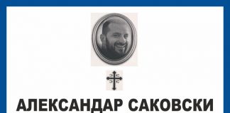 АЛЕКСАНДАР САКОВСКИ 1987. – 2018. У среду 19. семптембра 2018. године у 32-ој години живота у саобраћајној несрећи код града Блумингтона у држави Илиноис прерано је престало да куца племенито срце Александра Саковског, родом из Мостара у Босни и Херцеговини од оца Милисава и мајке Биљане Саковски. Родбина и пријатељи опростит ће се од покојног … Nastavi čitati АЛЕКСАНДАР САКОВСКИ 1987 – 2018