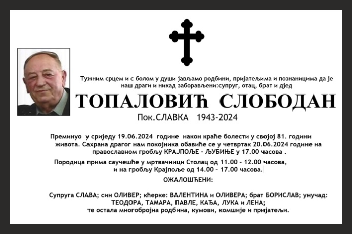 ТОПАЛОВИЋ СЛОБОДАН 1943 – 2024